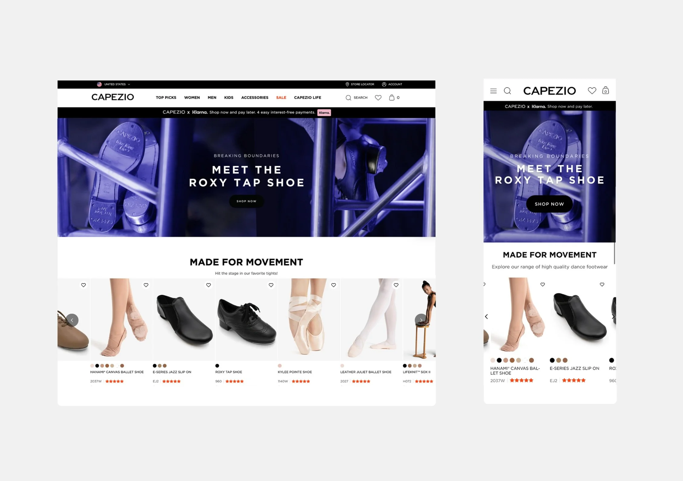 Web Sliders for Roxy Tap Shoe product launch campaign