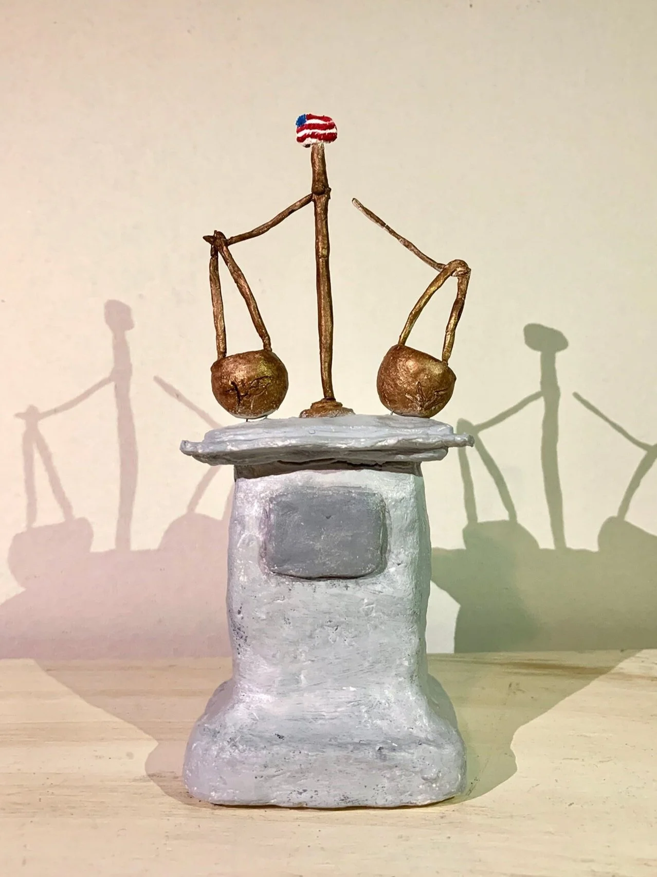Injustice: Then and Now, Catherine Tsilionis, Clay and acrylic paint, 7.5 x 4 x 2.5 inches.